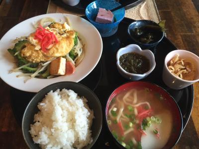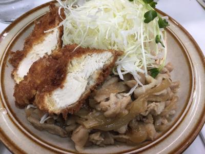 チキンフライと生姜焼きのセットをたのみましたが、キャベツもたっぷりで女性にも優しい!