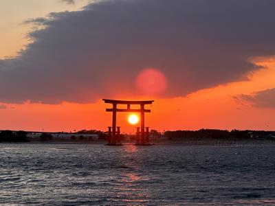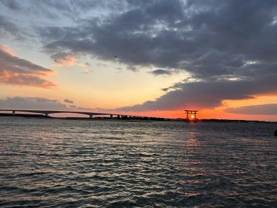 冬場は泳ぐことはできませんが、海の中にある鳥居のような観光シンボルタワーのなかに、夕日が沈んでいく風光明媚な景色が楽しめる場所として、大人気です。