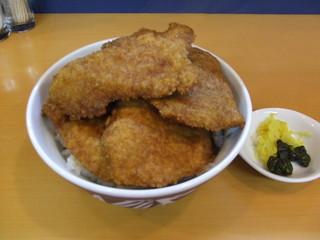 ヒレカツほどの大きさにあげたカツを、秘伝のシャビシャビなソースにつけ、ご飯の上に数枚のっけたどんぶりです。