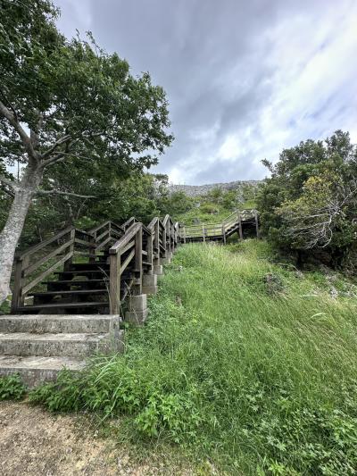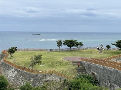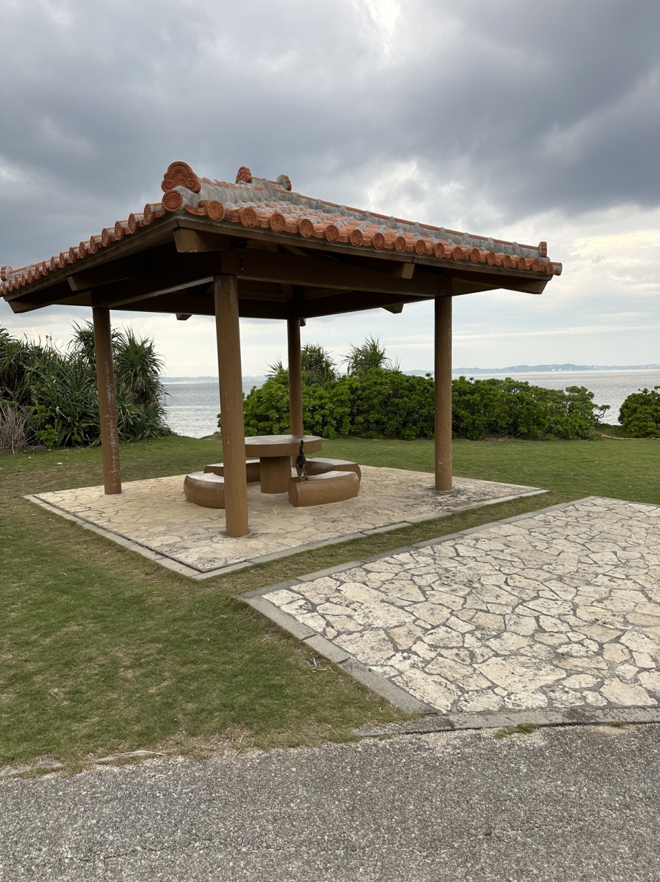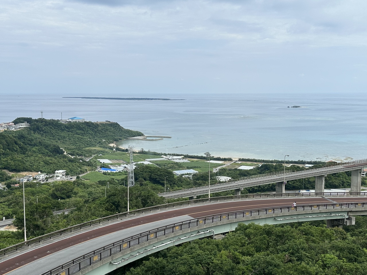 自衛隊の近くにある、車両通行止めの先の道を歩いていくと、橋と南城の海を一望できる展望スポットに行き当たります。