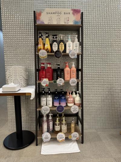 シャワールームにもシャンプー・リンス・ボディソープの備え付けはありますが、それとは別に、ちょっといいお値段のシャンプーを自由に使えるコーナーがあって、滞在中の一つの楽しみになりよかったです。- 旅行時期