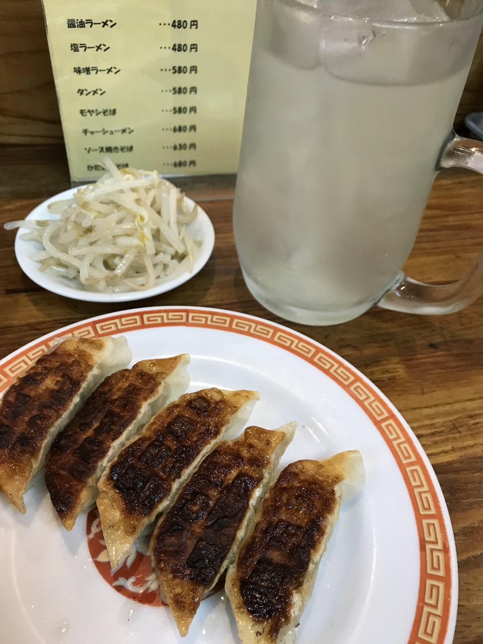 カウンターに座ると、まず「何枚にします?」と餃子の注文数を聞かれてからの、ドリンクのオーダーでした。