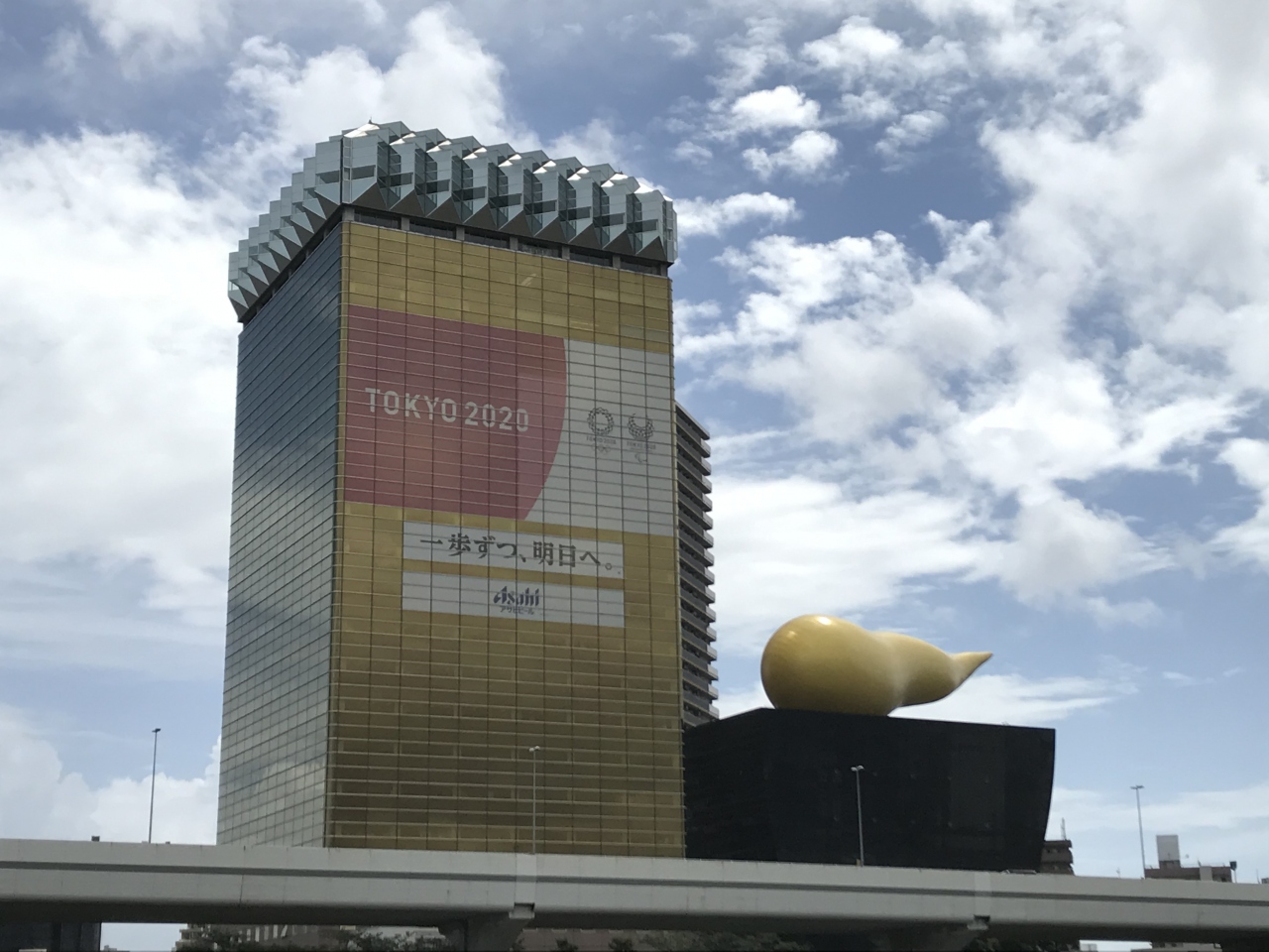浅草から隅田川の対岸に見える、黄金のモニュメントがあるビルが、アサヒビールの本社。