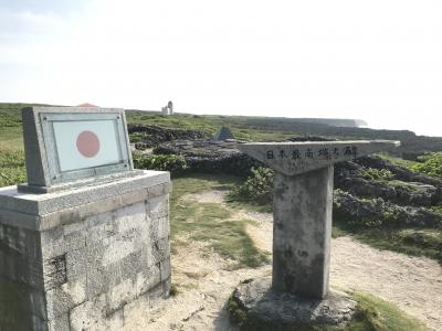 自転車で大汗を書きながらたどり着いた、日本最南端有人島の最南端です。