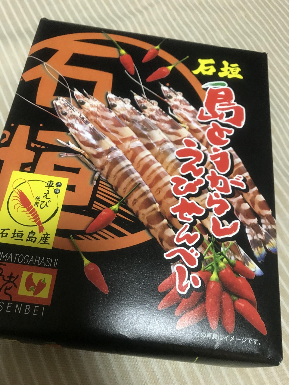 ピリ辛で海老の味わいが美味しいおせんべいが、1箱買うともう1箱もらえるというキャンペーンでした。