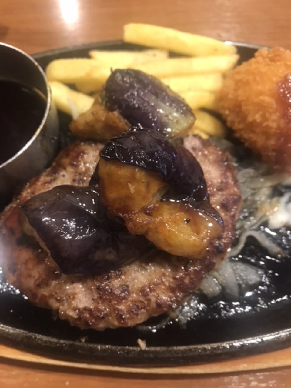この日は、ナスのテリヤキソースに、カニクリーム付きでした。