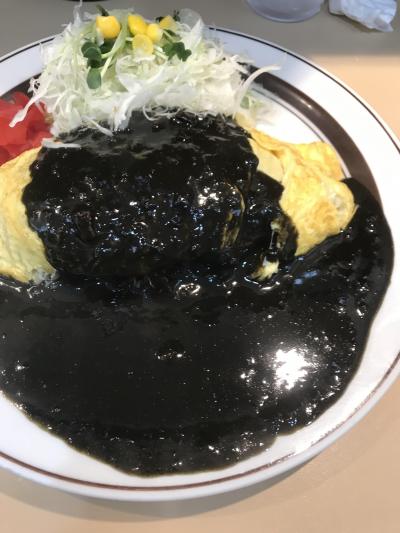 カレーは、さらりとした黒いルーで、ドライカレーをオムレツで包んだオムライスと非常によく絡みます。