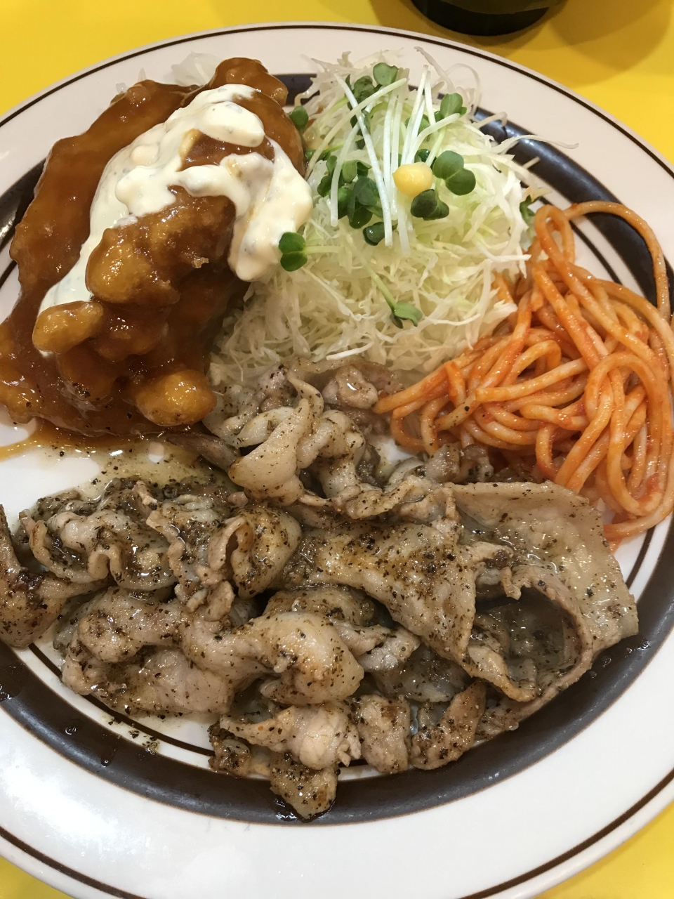 今日は、チキン南蛮にからし焼肉がついた定食をオーダー。
