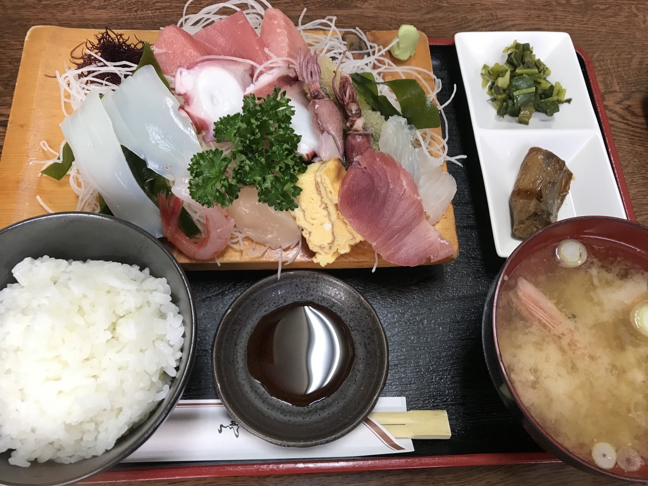 迷った末に、見た目のボリューム感がすごかった刺身盛り合わせ定食1,100円。