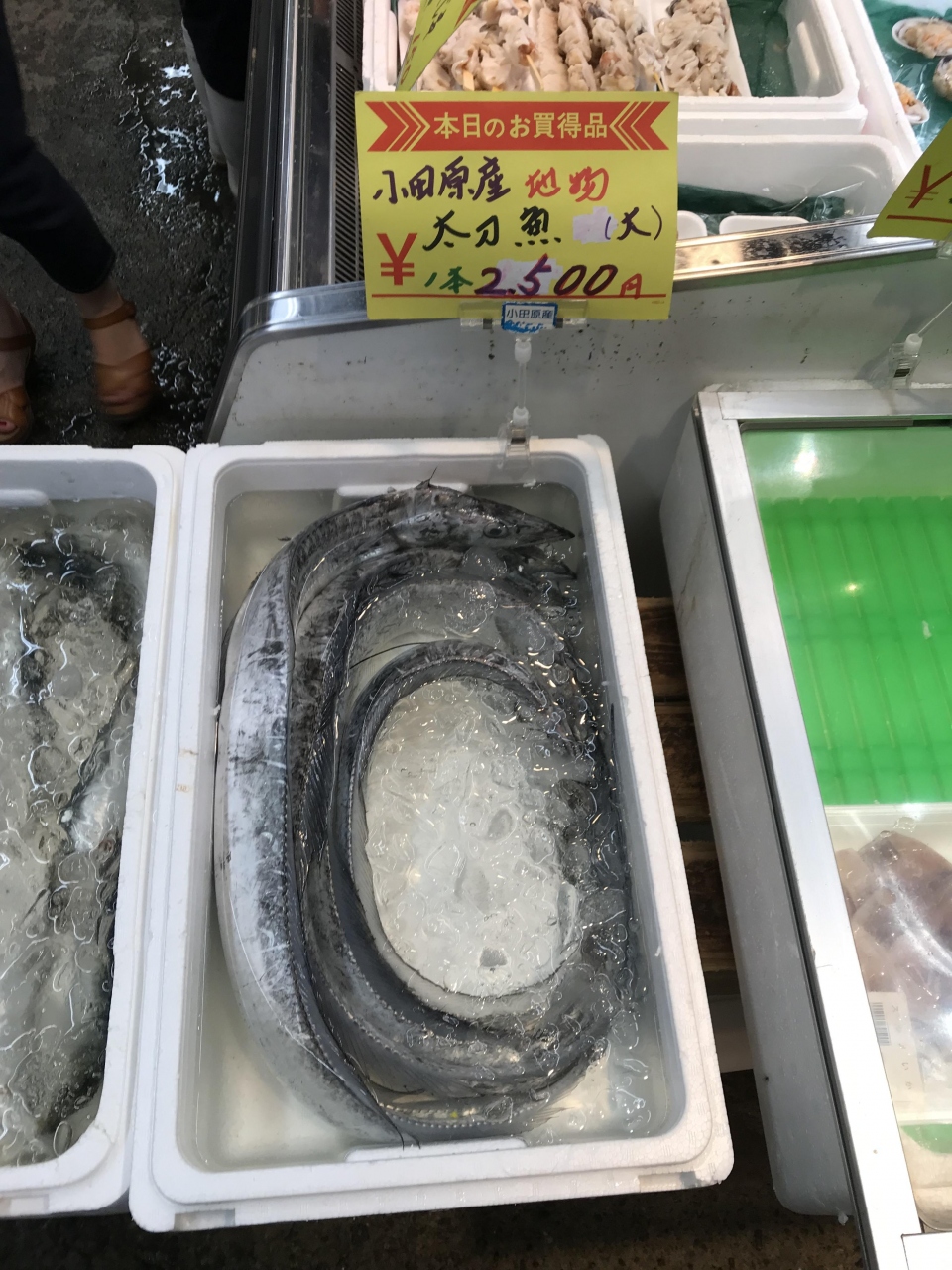 奥の方に魚の販売もあり、大きな太刀魚等新鮮な魚がたくさんありました。- 旅行時期