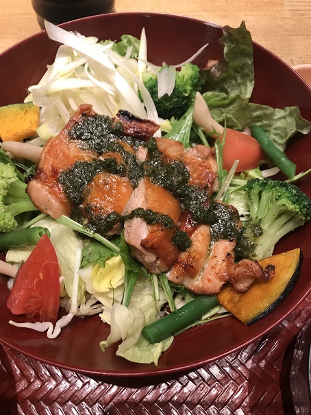 野菜もたっぷりとれるうえ、脂分控えめのチキンもバジルる味という斬新な感じでいただけます。