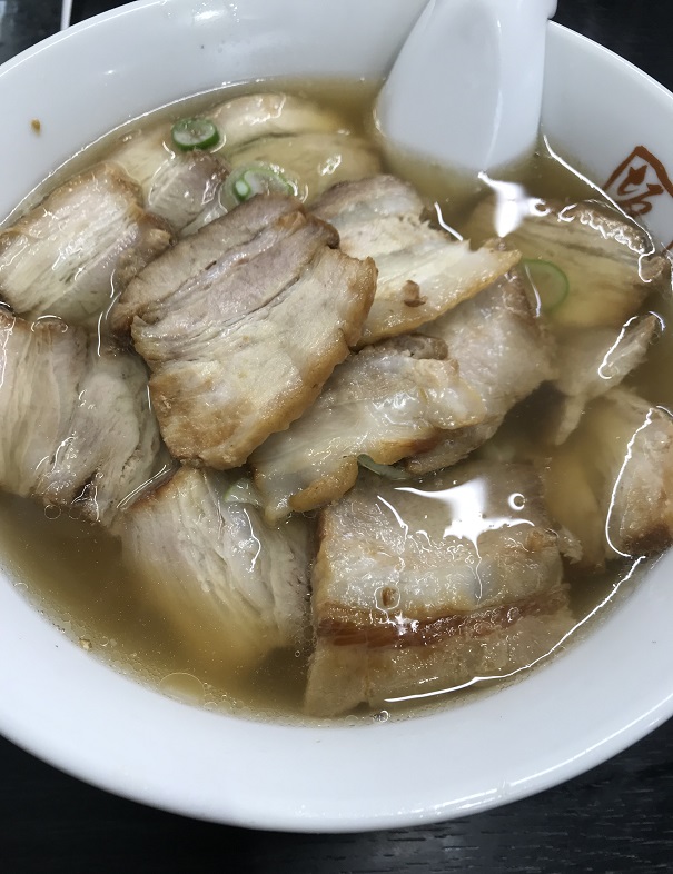 チャーシュー麺を頼んだら、麺が見えないほどたくさんのチャーシューがのっていました。