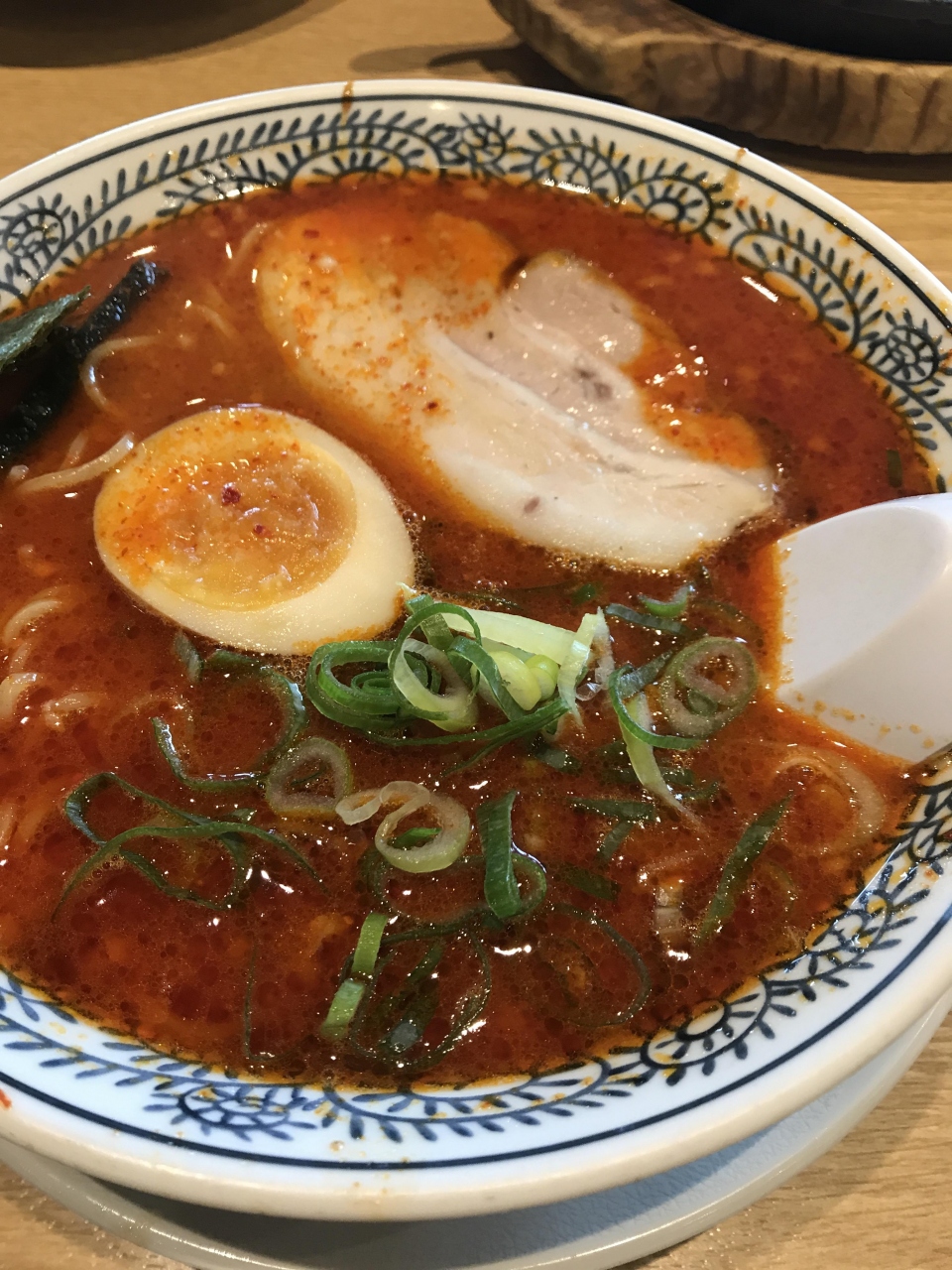 スープもめんもおいしかったけど、赤は刺激的に辛かったです。