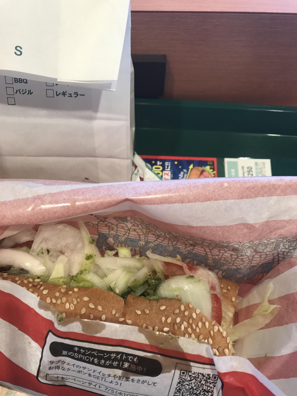 アボカドベジサンドに、バジルソースをチョイスしましたが、このソースにんにくも少しきいていてとてもおいしかったです。