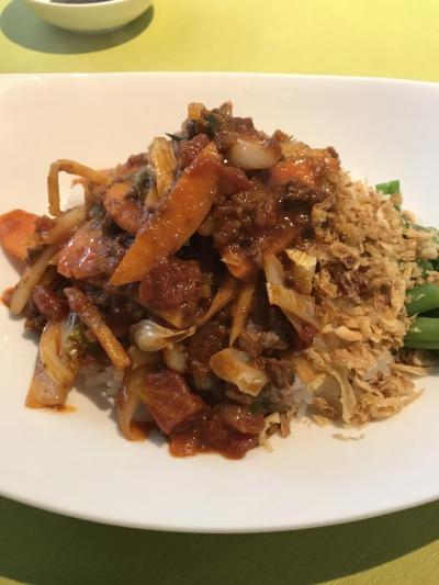 カレー丼にしてみましたが、カレーの味は全然しなくて八角が利いたトマトベースのマーボーのような感じで、とてもオリジナリティのある初めて食べた味でした。