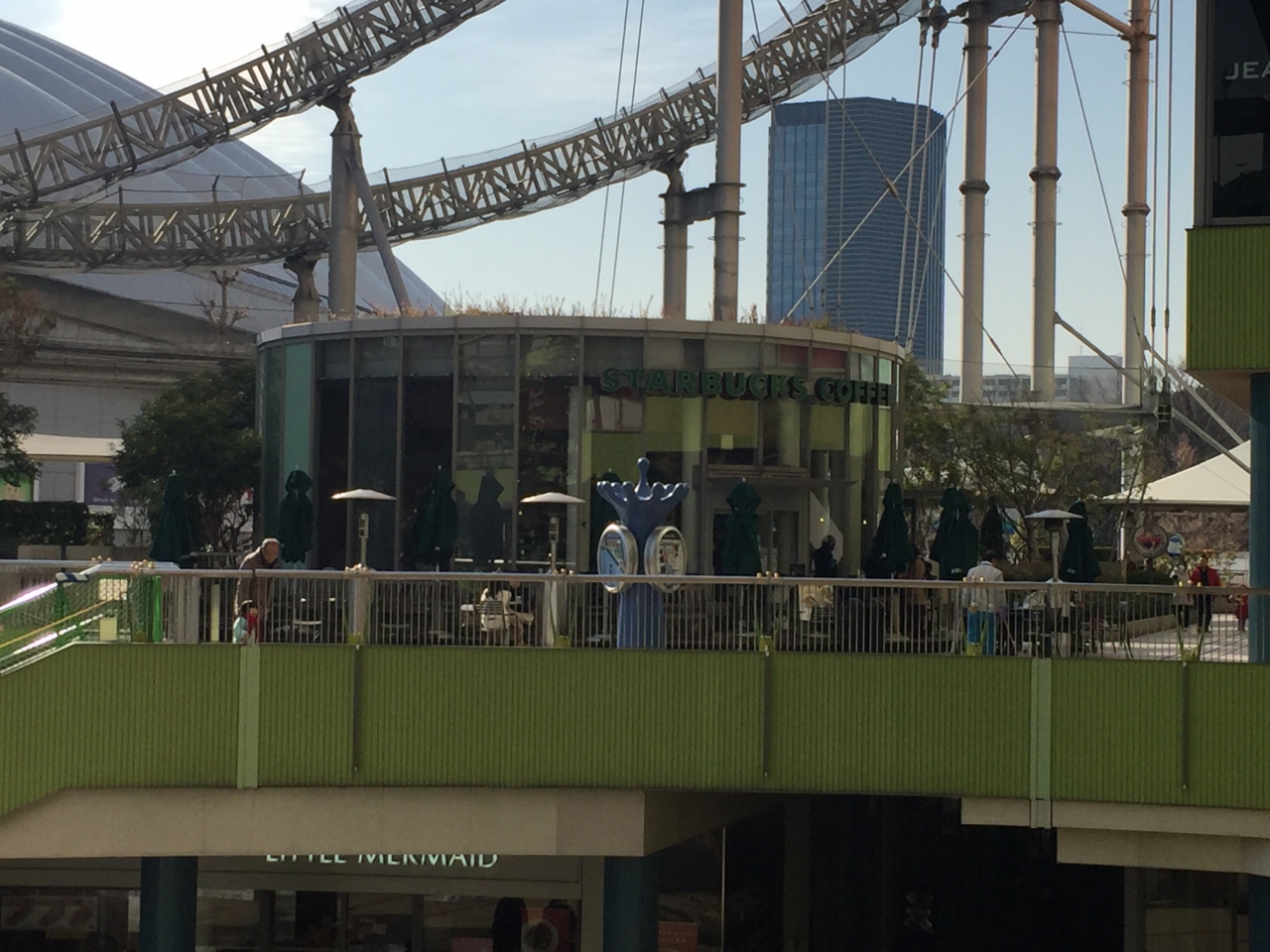 東京ドームシティ内にはスタバがふたつありますが、そのうち遊園地側のラクーアにある店舗です。