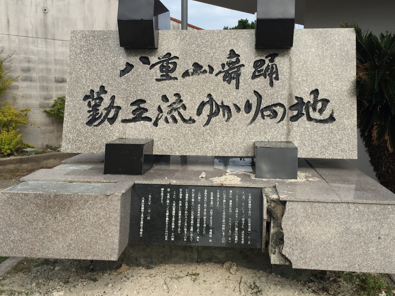八重山舞踊の一派がここ黒島で過ごしたとことをゆかりとして建てられたモニュメントが、東筋集落の黒島伝統芸能館前にあります。