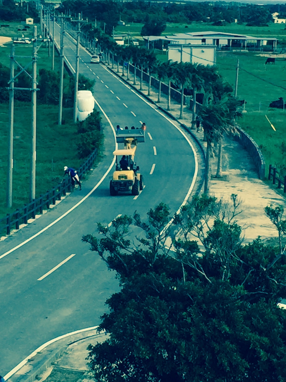 ホテルで自転車が借りられたので、台風前日のやや風が強い中、この橋を渡りました。