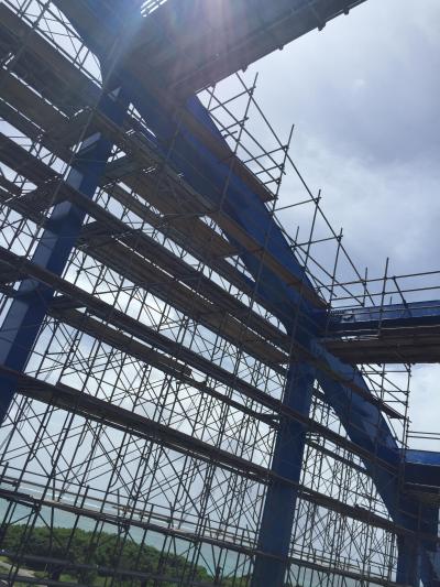 橋からの眺めは、足場などいろんなものに邪魔されてよく見えません。
