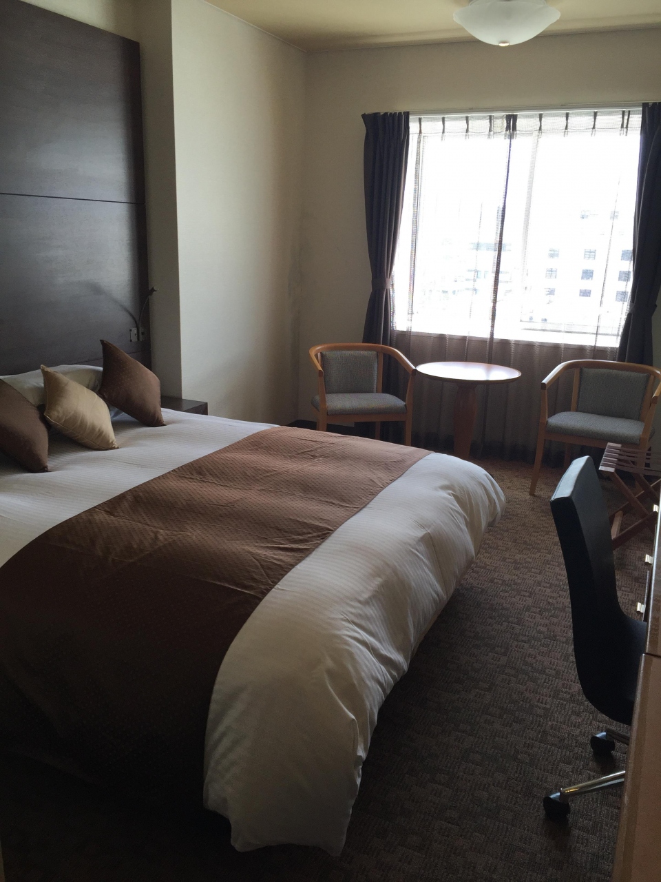 お部屋はビジネスタイプでコンパクトでしたが、部屋からは市内も展望できるし、大浴場もあってかなり満足しました。