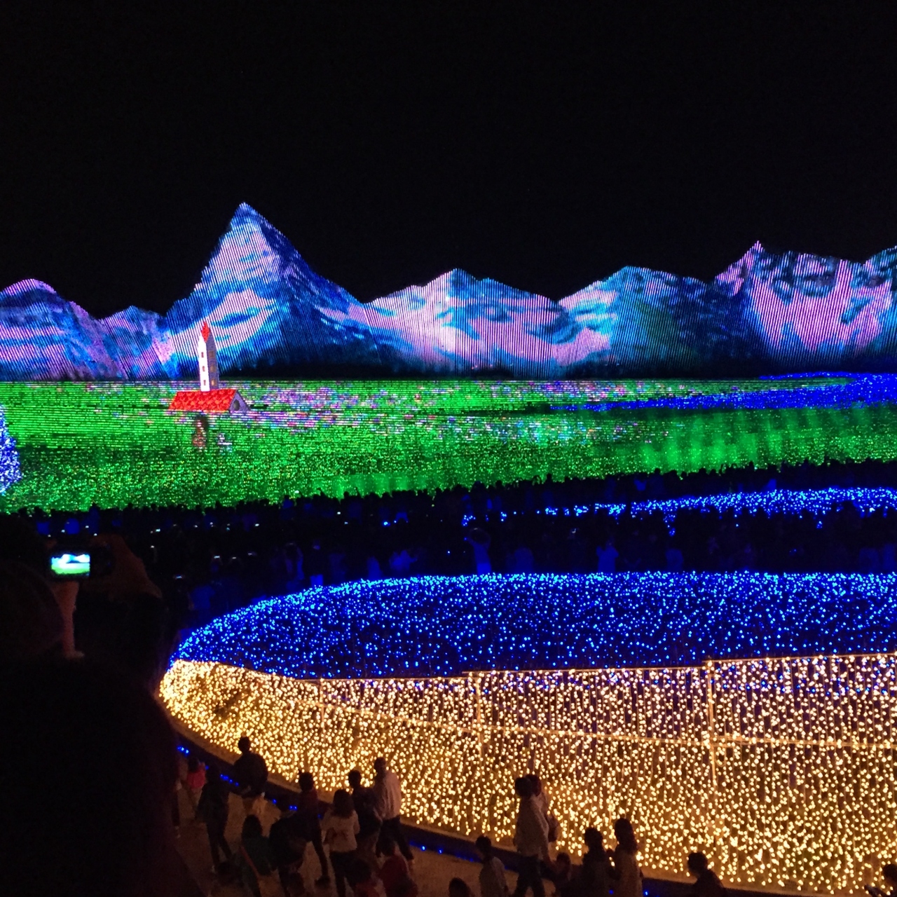 夜に行ったら、さすがに真っ暗でしたが、ささやかなイルミネーションがありキレイでした。