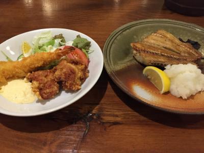 よくオーダーするのは、焼き魚に揚げ物が付いた定食です。