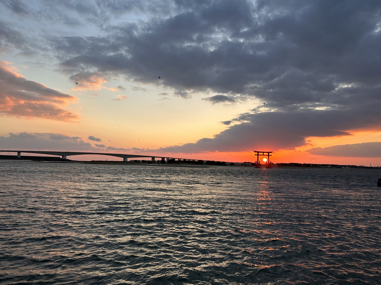 冬になると、この観光タワーの中に夕日が沈んでいくので、たくさんの観光客が来ます。