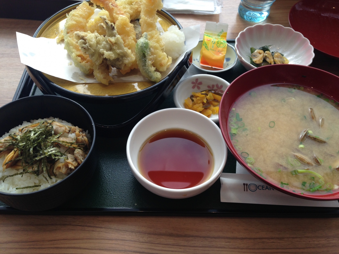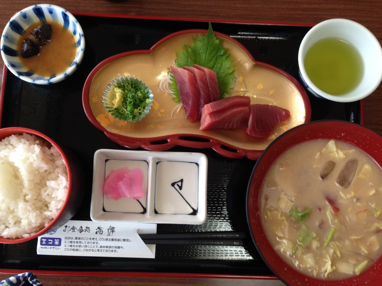 前回はシラスを食べたので、今回はWでわさびとお店のおススメ煎茶にしました。
