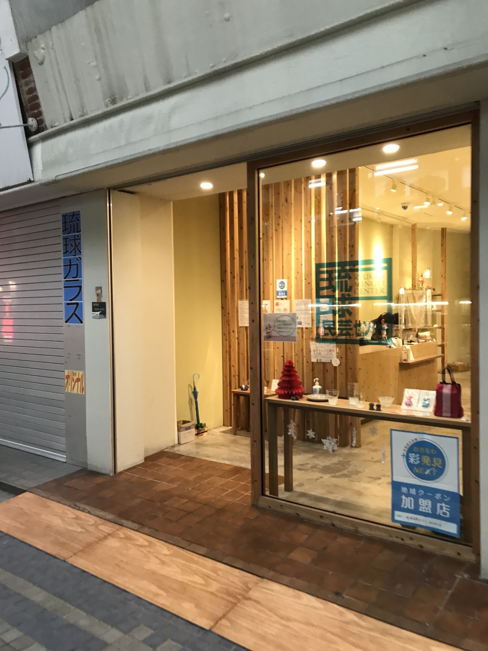 ユーグレナモール内にある、沖縄の民芸品より主に琉球ガラスとやちむんを販売するお土産屋さんです。