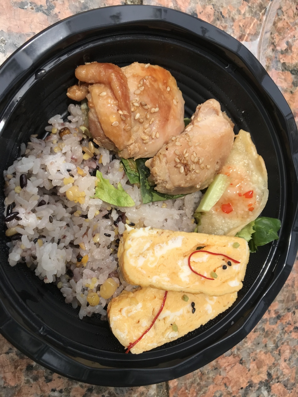 この日のごはんは、白米、トウモロコシの五穀米、あさりと生姜の炊き込みがおかわり自由の食べ放題でした。