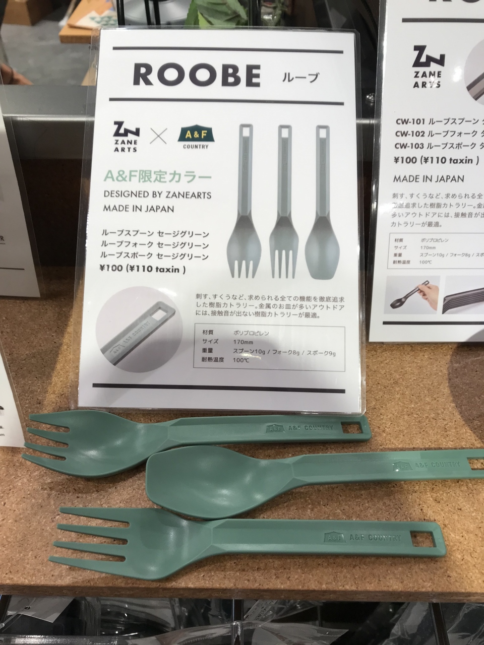 ZIGというLEDランタンを探しに行ったのですが無く、かわりにA&F限定のカトラリーセットがあったので購入しました。
