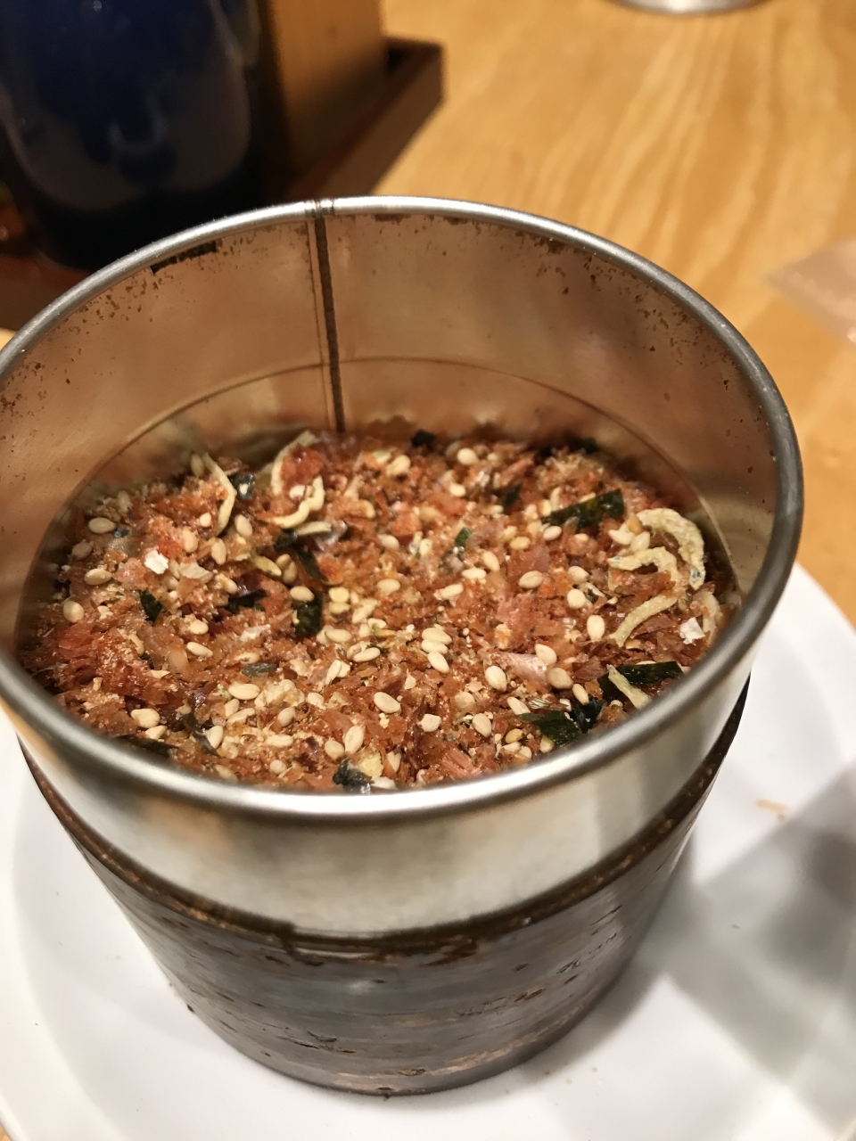 テーブルにあるふりかけですが、カルシウムたっぷりでカツオの風味が効いているので、ぜひ試してほしいです。- 旅行時期