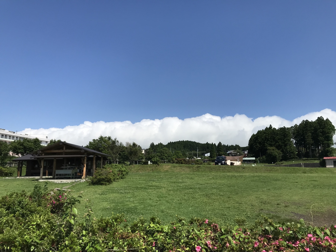 晴れていれば目の前に富士山も見えますが、木陰等がほぼないキャンプ場なので、これからの季節はタープ必須です。- 旅行時期