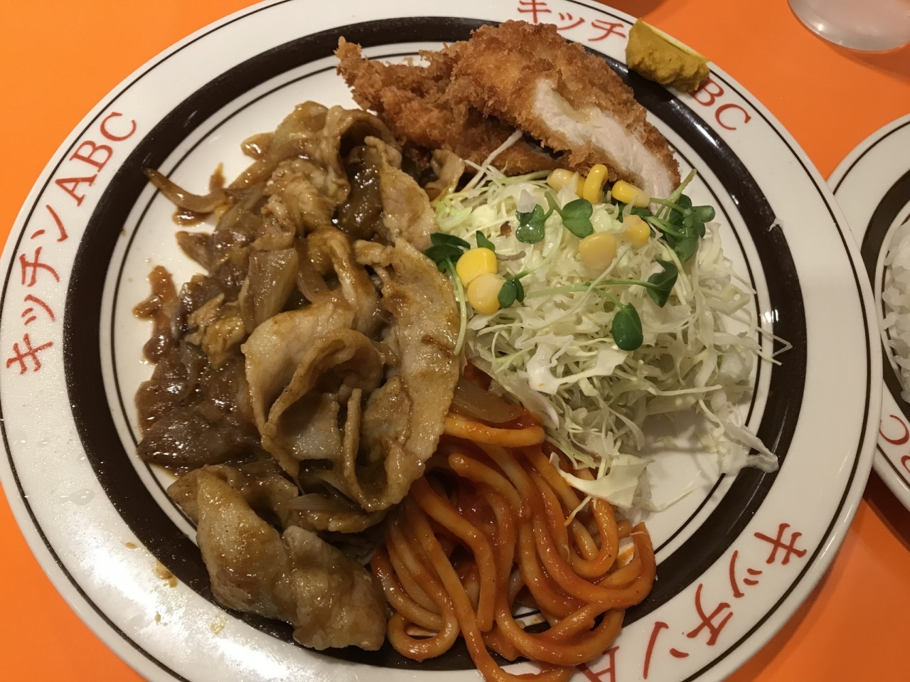 今回は、カレー焼肉とチキンフライの定食900円にしました。