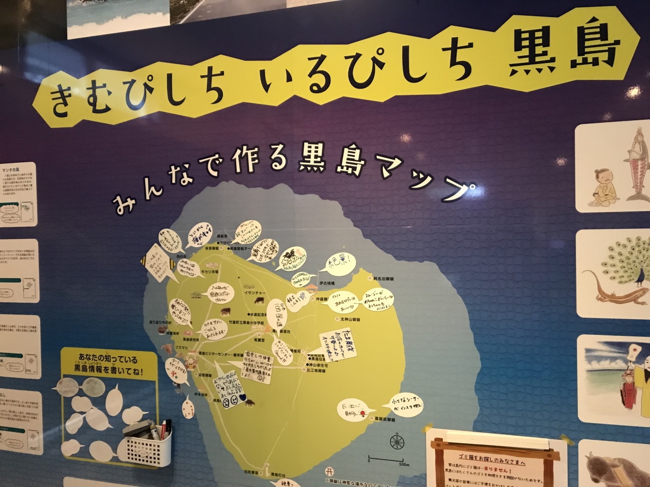 今回新しい展示物ができていて、色々と書き込みができる黒島の地図がありました。