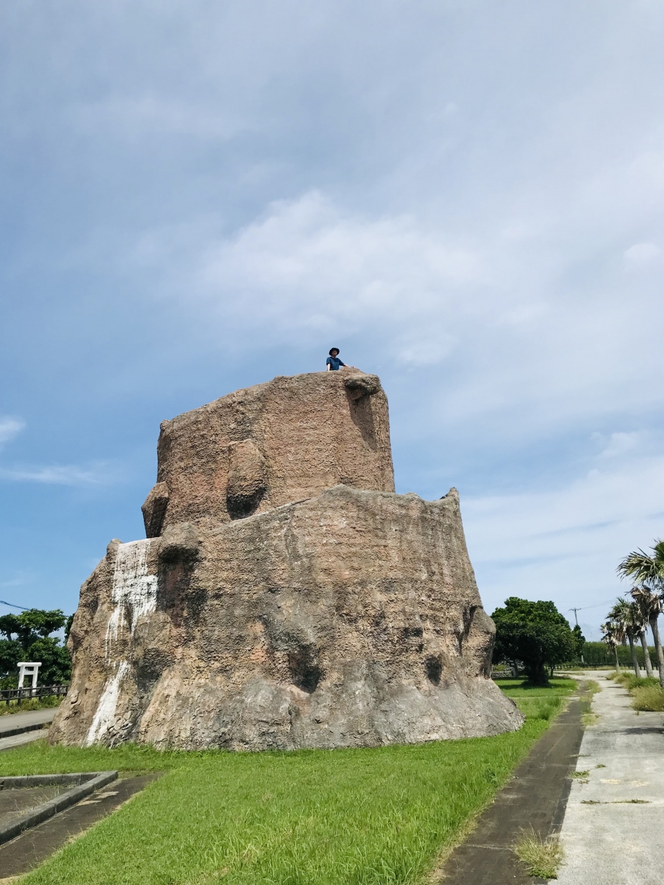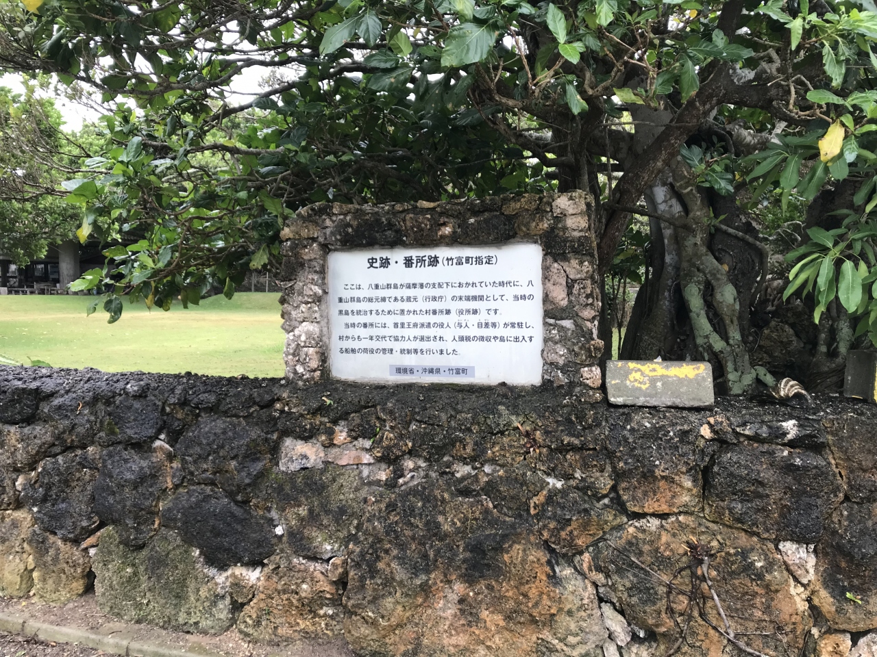 島の中心部でもある、東筋集落の黒島伝統芸能館のまえに大きな石碑があります。