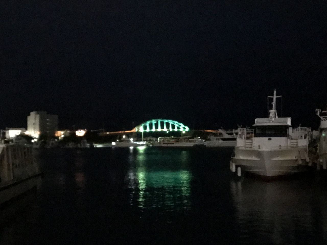 石垣の市街地にある八島エリアから、人口埋め立て地の南ぬ浜を結ぶ橋で、海(湾)のうえにかかっています。