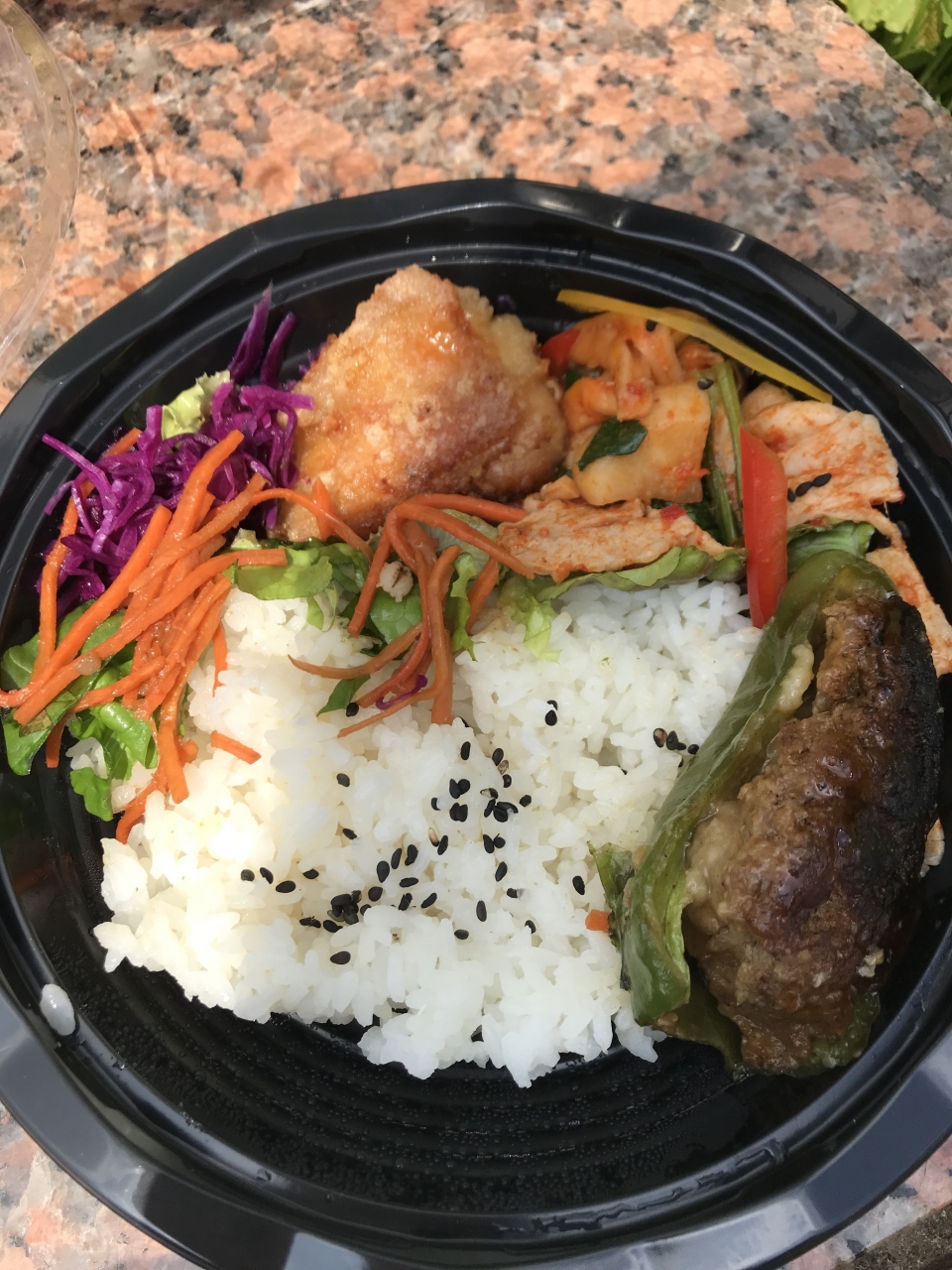 この日は、豚とんかつと大山鶏のから揚げセットをいただきました。