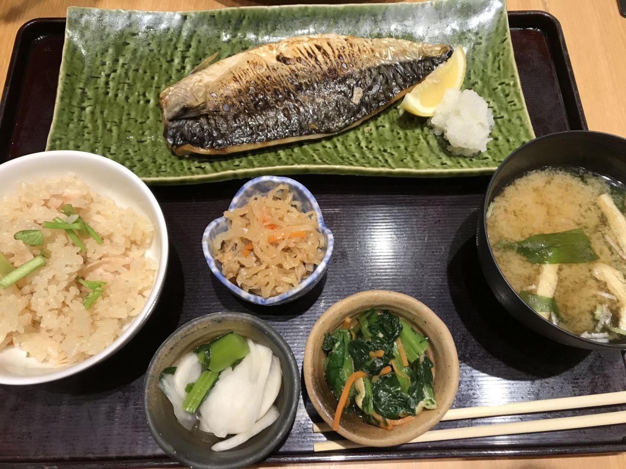ランチタイムに焼魚のヘルシーな和定食をいただきました。