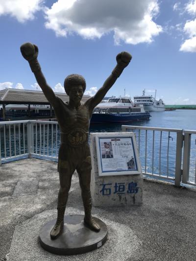 石垣の離島ターミナルには、島のヒーローである具志堅用高さんのモニュメントがあります。
