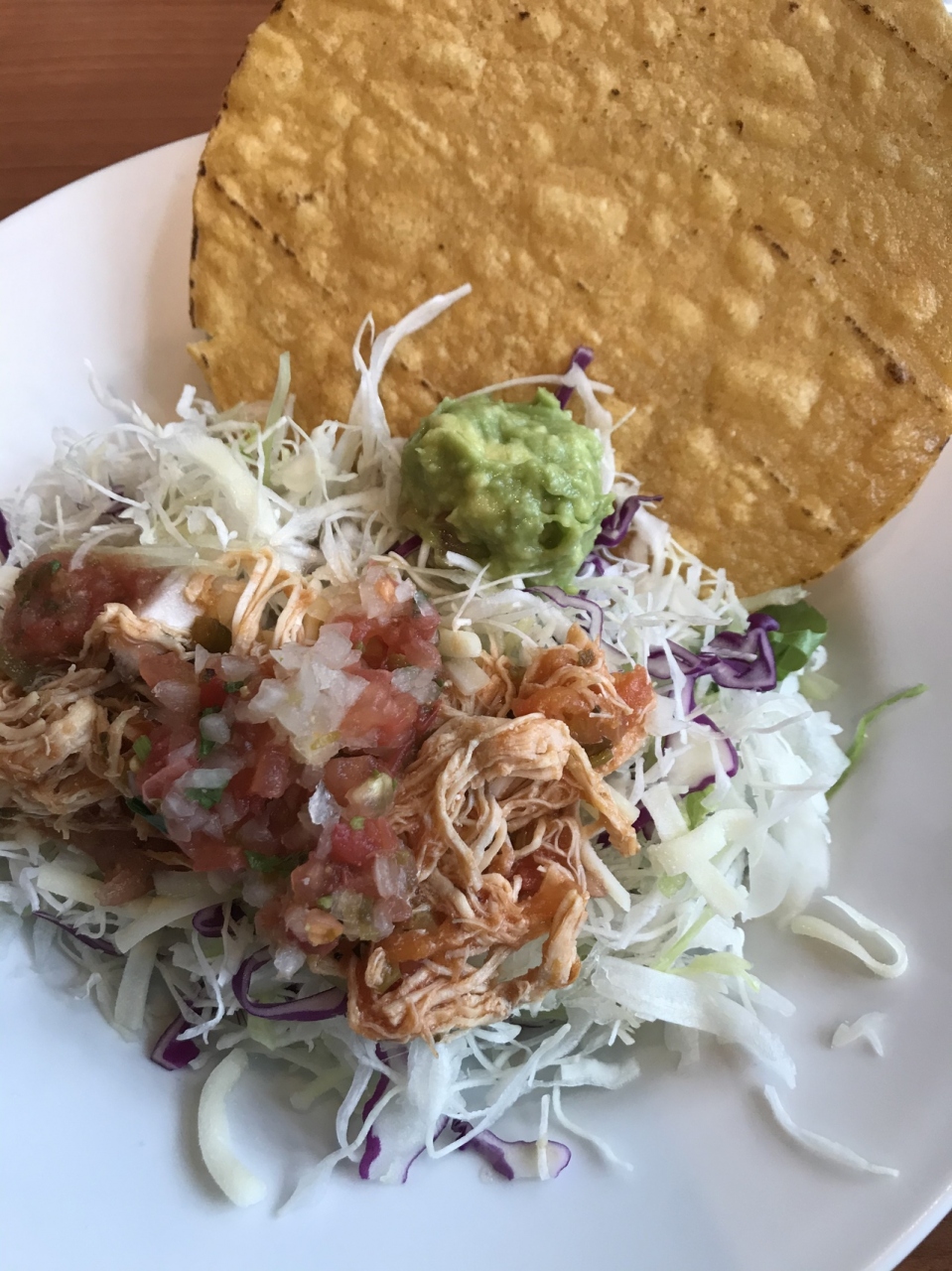 メキシカンっぽいサラダに、チキンが少しのっているだけなんですが、女性だったら十分なボリュームだと思います。