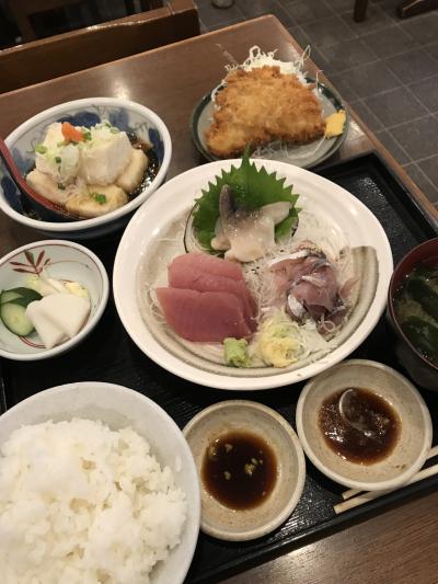 メニューも豊富なので色々食べたくなるのですが、刺身の盛り合わせ定食に、単品で揚げ出し豆腐とアジフライ1尾をつけて2,000円弱でした。