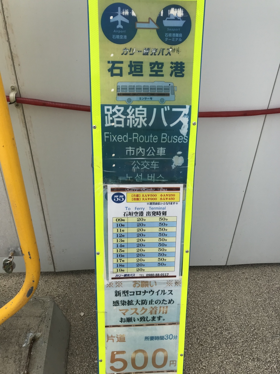 石垣の空港と市街地間を走るバスは2社ありますが、このカリー観光のバスは、途中にバス停がなく直通運転です。