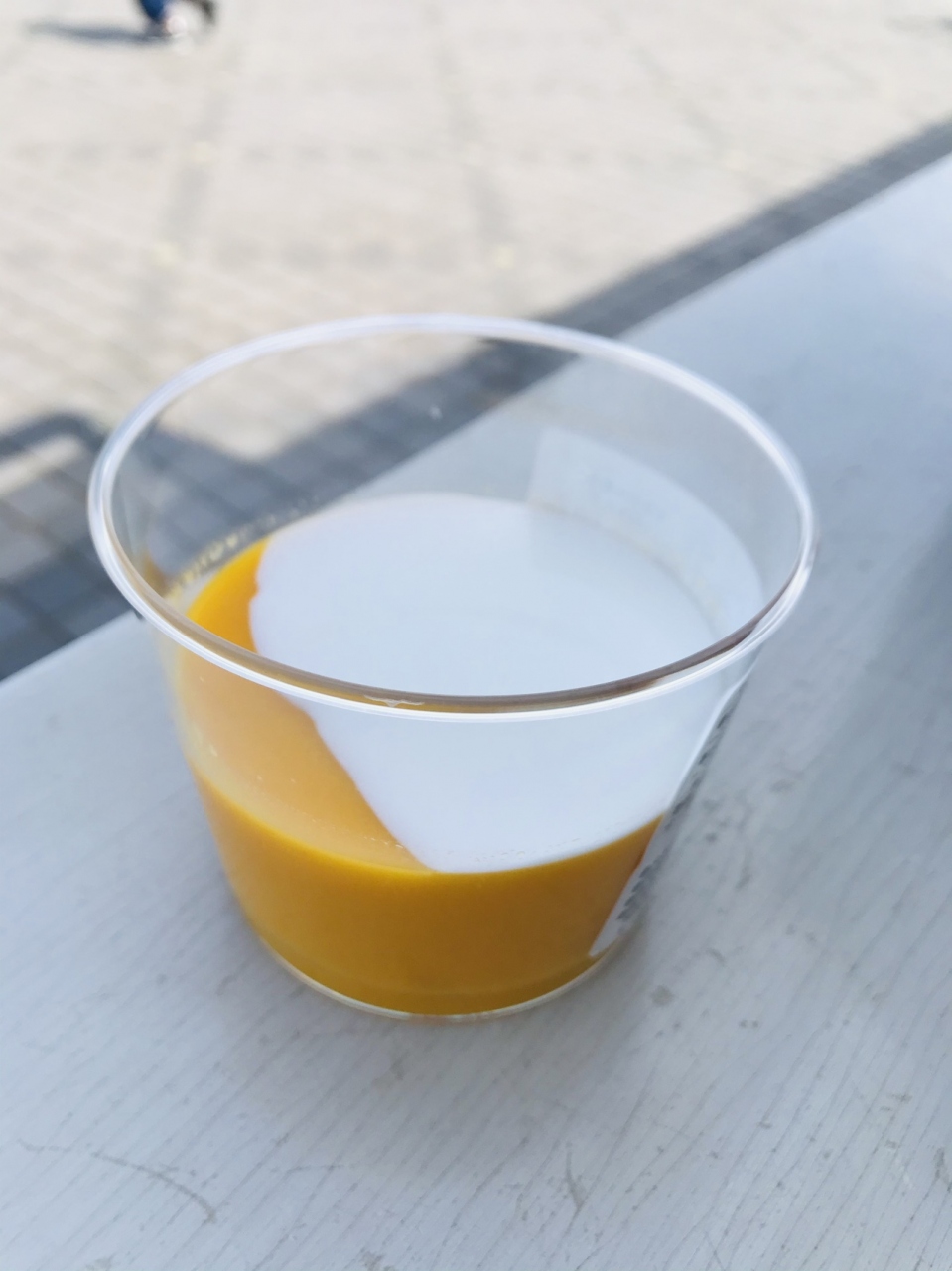 今日は、展望デッキで食べようと、羽田空港限定のマンゴープリンをいただきました。