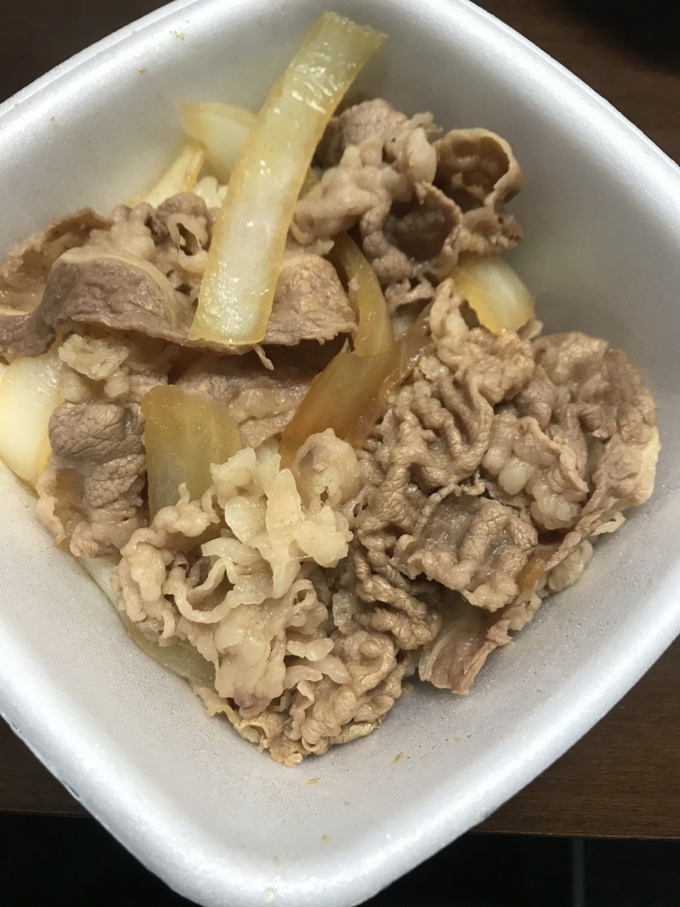 時間もなく、開いているお店も限られたので、テイクアウトができる吉野家さんをチョイス。