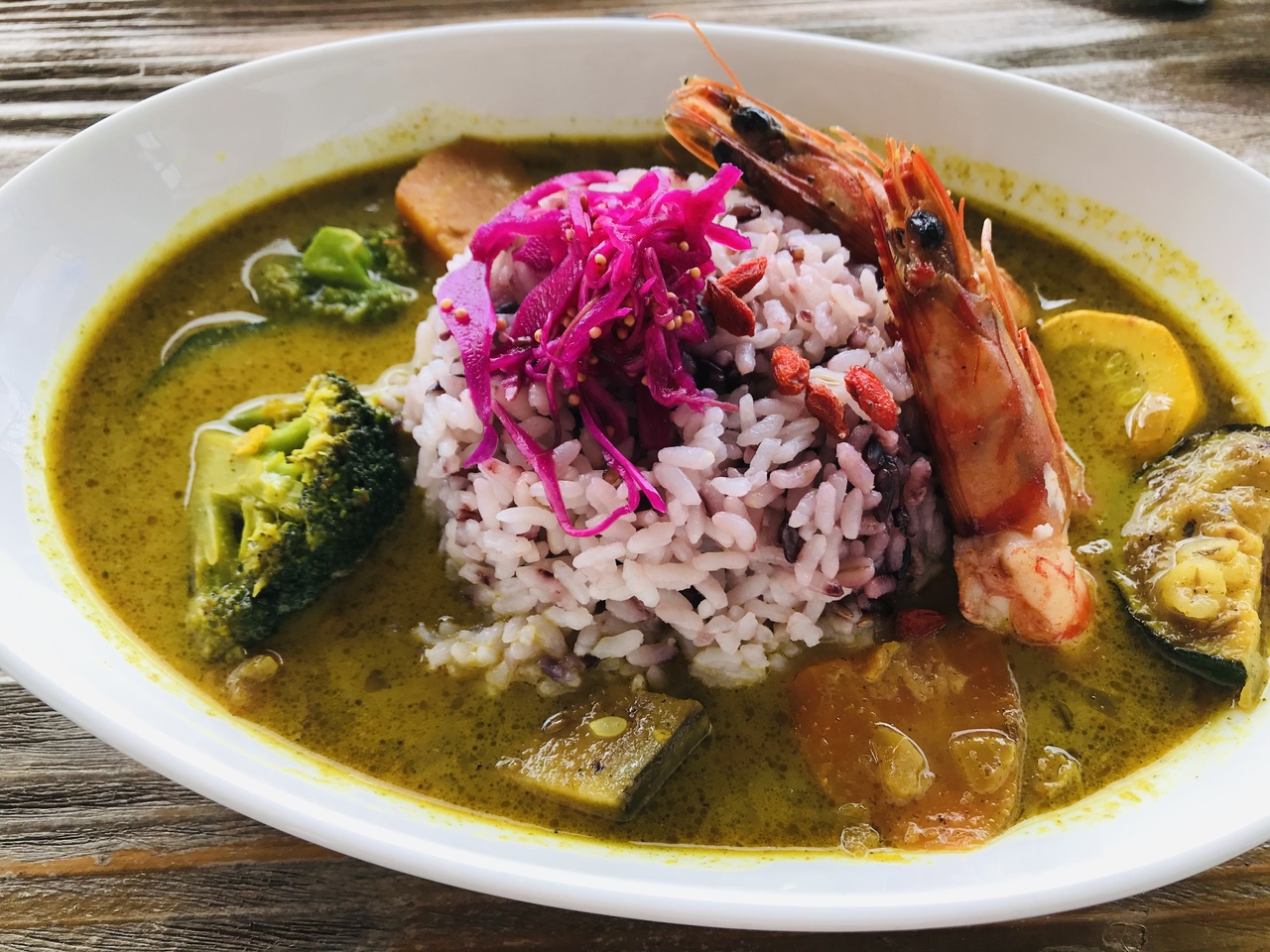 海を見ながら、石垣島産の車エビを使ったカレーをいただきました。
