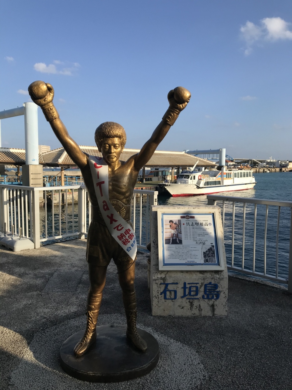 離島に行くときは必ずご挨拶したくなる、具志堅さんのチャンピオンモニュメント。