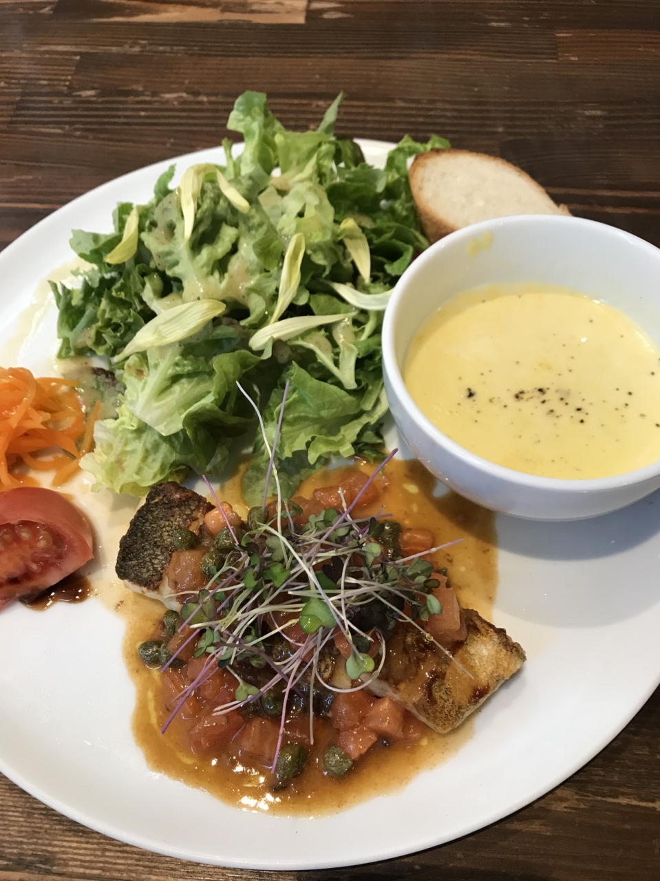 トマトとケッパーのソースがかかった鯛系のおさかなは、さっぱりしていて美味しかったです。