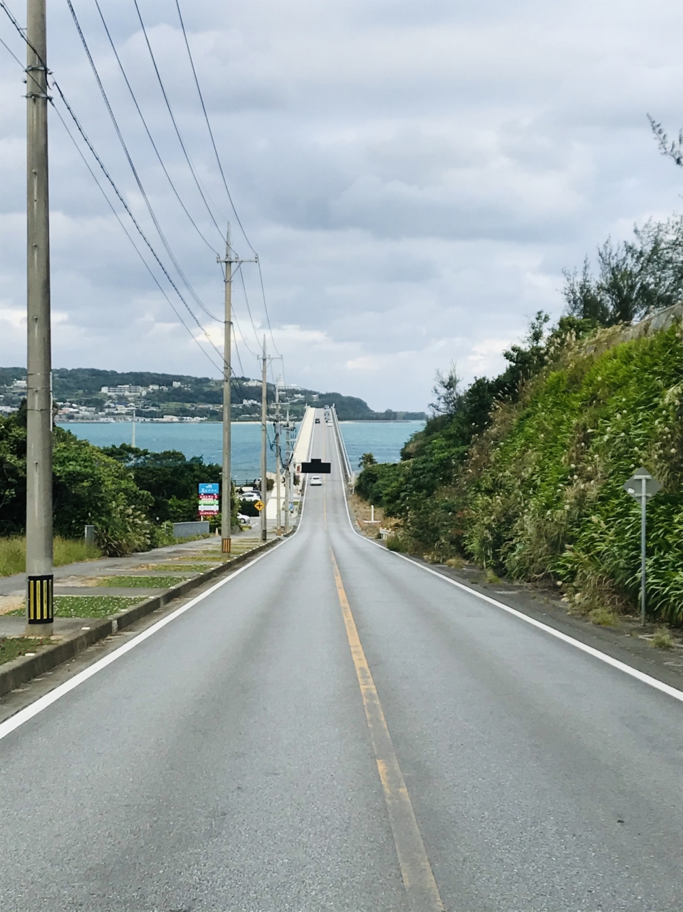 恋の島「古宇利島」にかかる、海の上を走る大橋です。