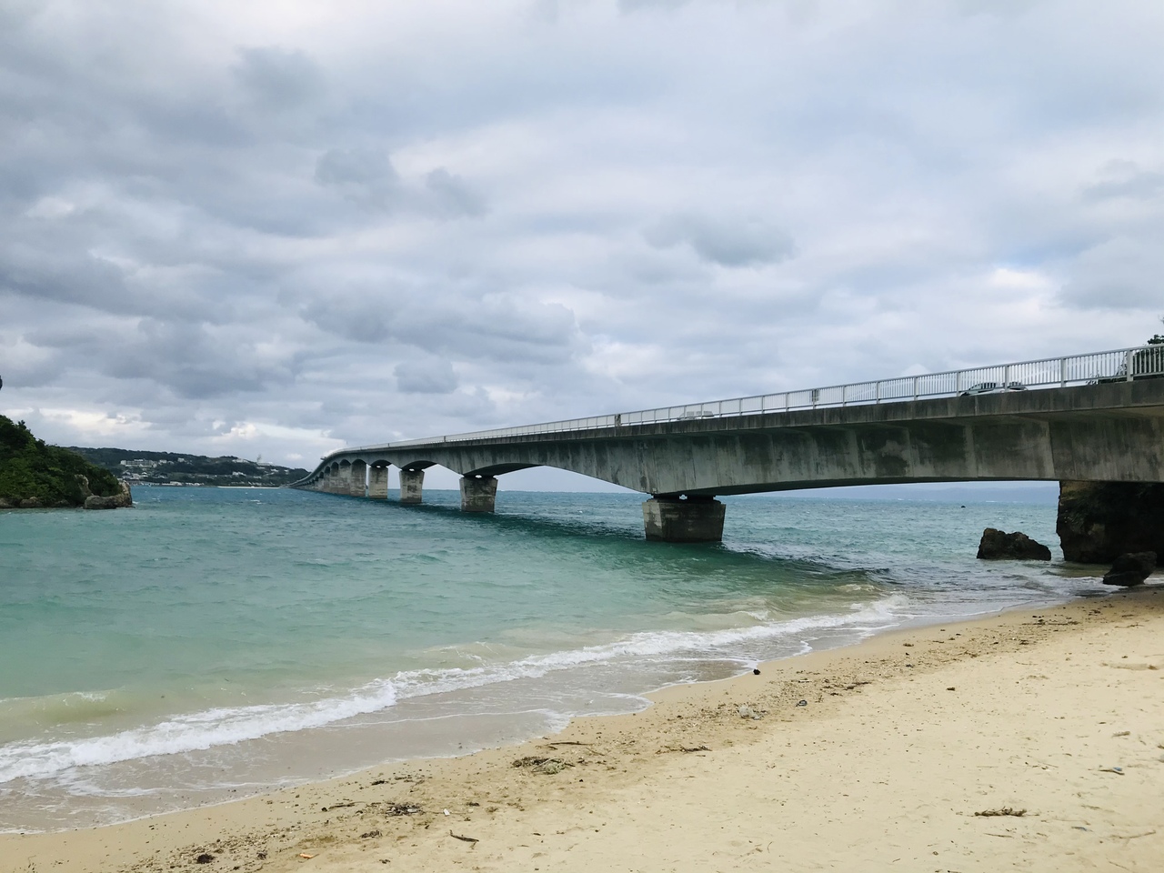 古宇利大橋のたもとには、沖縄らしいサンゴの白地砂のきれいなビーチがあります。